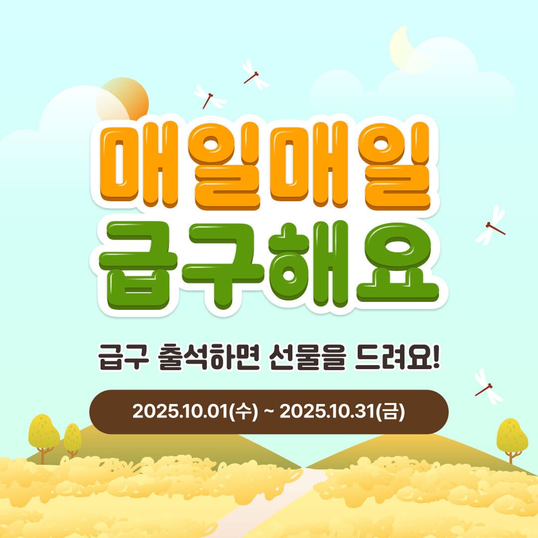 NOV 01, 2025급구앱 소식[EVENT] 11월 출석체크 이벤트🎁11월에도 출석체크 이벤트가 열렸어요! 매일매일 급구하고 푸짐한 경품도 받아가세요! 사탕, 음료, 따뜻한 커피 등이 선물로 준비되어 있어요. 이번 달에도 급구와 함께해 주실 거죠?